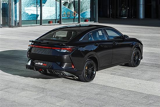 车辆侧面造型修长,一条隆起的腰线从前大灯处贯穿整个车身直至尾灯,搭配车门处内凹的类似“L”样式的线条,在光影下很有立体感。此外,悬浮式车顶、隐藏式门把手的加入也营造出不俗的时尚气息。在细节上,新车还配备了大尺寸密辐式双色轮圈。车身尺寸方面,新车长宽高分别为4820mm*1930mm*1699mm,轴距为2820mm。车辆尾部造型同样方正、沉稳,同时还配备了时下流行的贯穿式尾灯。此外,车顶处大尺寸扰流板以及双边共两出的排气布局,有效提升了车辆的性能感。