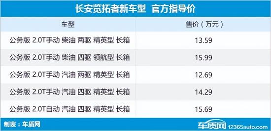 6月2日,编辑从长安汽车官方获悉,旗下览拓者新增车型已正式上市,新车推出了5款燃油版车型,售价区间为13.59-15.99万元。另外,新车还推出了1款纯电动版车型,售价为27.99万元。(配图均为燃油版车型)