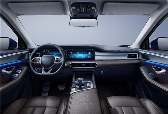 内饰采用了较为简洁的设计风格,配备了液晶仪表和10.1英寸中控屏,空调出风口下方还配备了容积不小的储物空间。新车后排空间非常宽松,后排中央有一个宽大的扶手,配备真皮座椅,乘坐舒适性进一步提升。