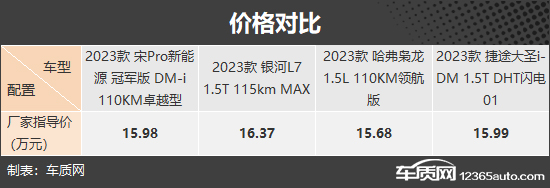 比亚迪宋Pro新能源相信大家都不陌生了,其入局新能源市场较早,属于久经沙场的“老将”。而银河L7、哈弗枭龙以及捷途大圣i-DM都是近年来推出的全新车型。作为后来者,三款车型吸取了前辈们的经验,在颜值、配置以及续航方面都有着出色的水准。