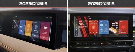 2023款荣威i5全系配备了双10.25英寸连体屏幕,整体显示效果更加细腻。内部车机更换为了斑马智行互联系统,可支持B站、网易云等多种APP和小程序。在内部功能和实用性方面,2023款荣威i5增加了前排座椅加热、皮质方向盘、后排中央扶手以及后排杯架。略有遗憾的是,手机前排无线充电功能在新款车型上被取消。
