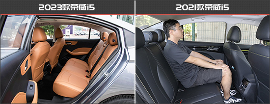 身高为180cm的体验者坐进老款车型调整好座椅后,头部拥有一拳三指距离,头部空间表现可观。保持前排座椅不变,体验者来到后排,此时头部空间拥有一拳距离,腿部拥有两拳距离。由于2023款荣威i5车身尺寸有所提升,所以在乘坐空间方面预计会有一定提升。
