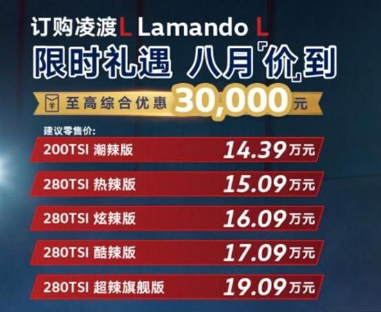 8月21日,上汽大众凌渡L 200TSI上市,售价14.39万元。此次新增的车型搭载1.2T涡轮增压发动机,售价进一步下探,拉低了整个车系的入手门槛。