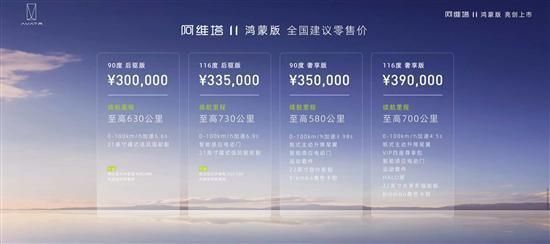 8月24日,阿维塔11鸿蒙版正式上市,此次上市新车共推出4款车型,售价30-39万元。新车采用曜黑车漆颜色,搭载全新升级的华为鸿蒙座舱。