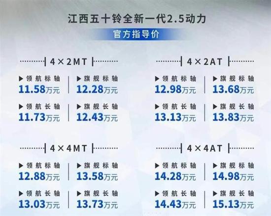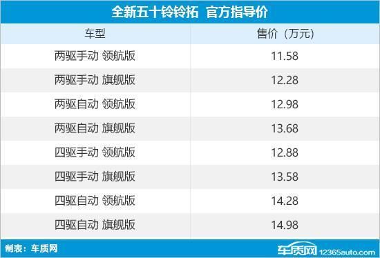 在2023成都车展上,全新五十铃铃拓正式上市,新车推出8款标准轴距车型,售价区间为11.58-14.98万元,若选装长轴距版在此基础上需额外加1500元。新车针对外观和内饰进行全面升级,性价比突出。