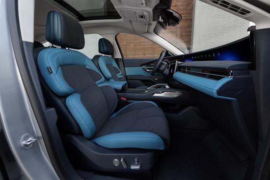 内饰部分重点强调科技感,中控采用曲面设计的大尺寸联屏,再配合横贯式空调出风口,整体视觉观感相当前卫,另外在内饰用料方面,新车也大面积使用了环保有机材料,更为健康而且亲肤。