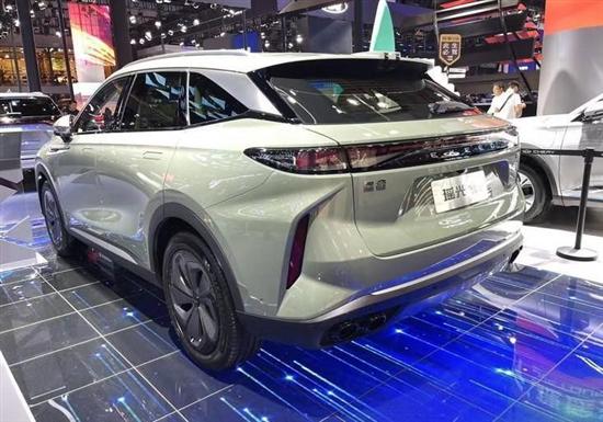 车身侧面,呈现出明显的溜背Crossover跨界风格,得益于纯电架构布局,新车的前后悬都非常短,比例优美,而轴距达到了2900mm,同级优势明显。车尾部分,新车采用了双风道车顶扰流板,配合造型独特的贯穿式LED尾灯,不仅视觉运动感十足,更彰显出色的辨识度。