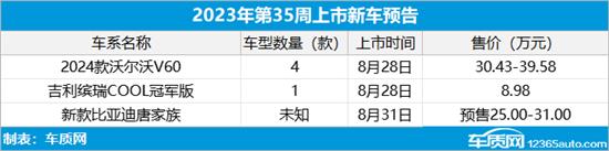 2023年第35周(8月28日-9月3日)上市新车预告