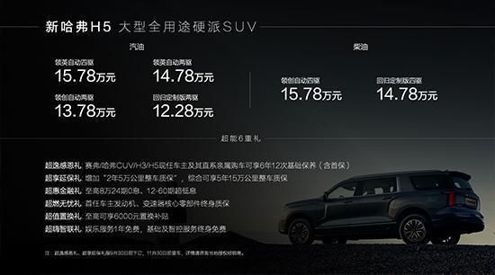 8月21日,全新一代哈弗H5正式上市。新车共推出6款配置,售价区间为12.28-15.78万元。作为换代车型,全新一代哈弗H5基于坦克平台打造,采用非承载式车身结构,动力方面提供2.0T汽油和柴油发动机可选。