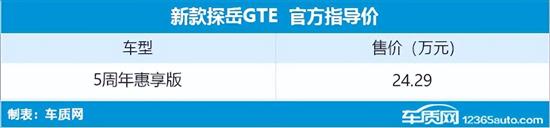 9月1日,新款大众探岳GTE正式上市,新车推出1款车型,售价为24.29万元。新车主要针对外观细节进行小幅优化,同时也是为了纪念一汽-大众华北基地建成投产5周年,所推出的特别版车型。
