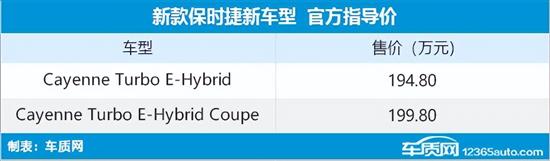 8月29日,保时捷正式公布了旗下Cayenne混动版在国内的指导价,新车推出2款车型,售价区间为194.8-199.8万元。