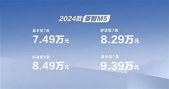 9月5日,2024款东风风行菱智PLUS和2024款菱智M5车型正式上市。两款新车均搭载全新1.5T发动机,其中2024款东风风行菱智PLUS共推出4款车型,售价区间为10.19-11.49万元;2024款菱智M5同样推出4款车型,售价区间为7.49-9.39万元。