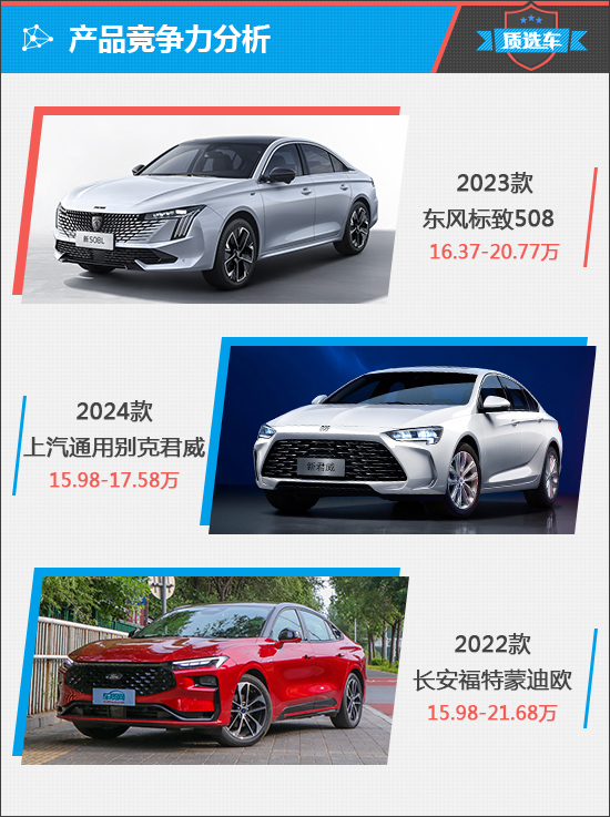动力系统方面,标致508搭载了1.8T发动机,自然在动力参数上比不过另外两位搭载2.0T发动机的美系选手,不过差异并不算大。同时,三款车型均匹配AT自动变速箱,不过仅标致508和别克君威支持手动模式,福特蒙迪欧只有自动模式。