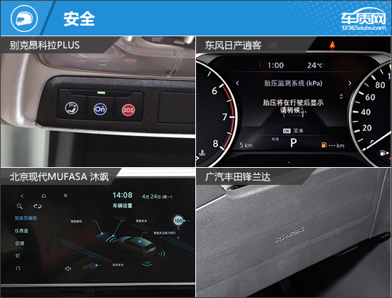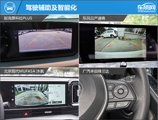 驾驶辅助配置方面,上汽通用别克昂科拉PLUS和北京现代MUFASA 沐飒表现较好,配置相比其他两款车型要更加丰富。相比之下,广汽丰田锋兰达不仅未配备前、后驻车雷达,倒车影像也未提供,对于新手来说不太友好。