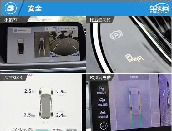 安全配置方面,四款车型在主/被动安全配置上均有细微差异。其中,小鹏P7独享哨兵模式/千里眼;比亚迪海豹冠军版、深蓝SL03以及欧拉闪电猫都配备了内置行车记录仪,同时比亚迪海豹冠军版还配有同级罕见的膝部气囊,对驾乘人员的安全更有保障。总的来说,四款车型都有不错的表现,整体差别不是很大。