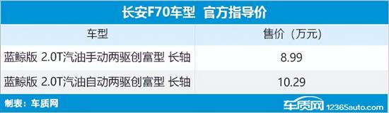 动力系统方面,长安F70蓝鲸版将搭载2.0T蓝鲸涡轮增压四缸发动机,最大功率171kW,峰值扭矩390N·m,与之匹配的传动系统为6速手动或8速手自一体变速箱。