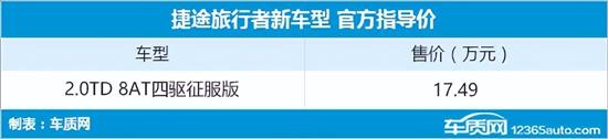 10月25日,我们从捷途汽车官方获悉,旗下旅行者四驱征服版正式上市,售价为17.49万元。同时,新车还推出了购车权益,购车享订金2000元抵8000元购车款,15000元置换补贴,首任非运营车主整车终身质保,24/36期0息,一成首付超长贷,首任车主享5年免费流量(6G/月)等。