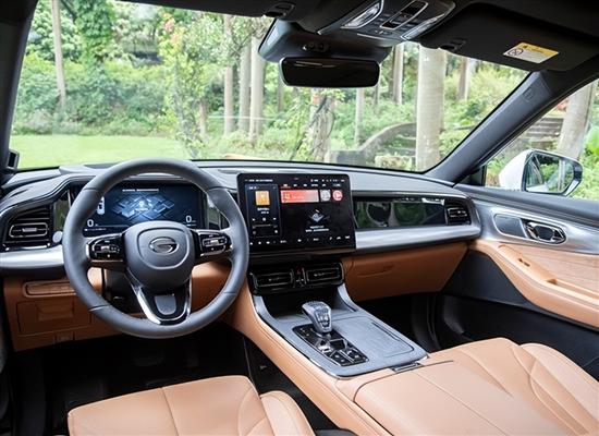 车辆内部造型平直,中控台采用了大量软质材料包裹,搭配中控台上的高亮饰条,内部档次感得以保证。而12.3英寸全液晶仪表+14.6英寸中控大屏也保证了科技感。配置上,传祺新能源ES9搭载了新一代ADiGO 4.0智驾互联生态系统、AR-HUD、ADiGO 4.0智能辅助驾驶、540°透明底盘等。