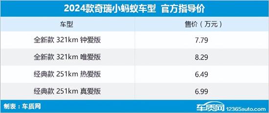 10月28日,奇瑞新能源官方宣布旗下新款小蚂蚁正式上市。新车共推出2款车型,售价区间为7.79-8.29万元。新款小蚂蚁重点针对外观细节进行了升级,采用全新的Qq专属标识,同时新增“不焦绿”和“绝绝紫”两款全新配色。此外,经典款小蚂蚁也将同堂销售,同样推出2款车型,售价区间为6.49-6.99万元。