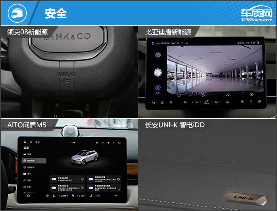 在设计方面,领克08新能源和AITO问界M5采用了更加新颖的风格,封闭式中网更偏向纯电动车设计理念。而比亚迪唐新能源和长安UNI-K智电iDD则保留了同车系燃油版车型的造型特征,更容易被广大消费者接受。