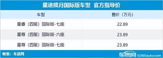 11月1日,星途揽月国际版正式上市,此次共推出3款车型,售价区间为22.89-23.89万元。新车在原有的基础上在外观和配置方面有所升级,未来将与传祺GS8、福特领裕等车型竞争。