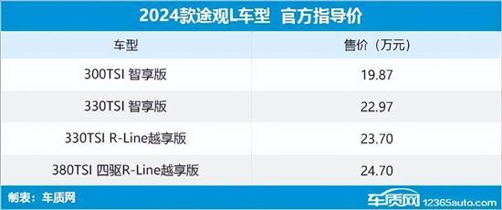 11月1日,上汽大众2024款途观L正式上市,此次共推出4款车型,售价区间为19.87-24.70万元。同时,官方表示即日起至2023年11月30日,可享受限时至高5年0利率,至高8,000元置换或本品增购补贴等政策。