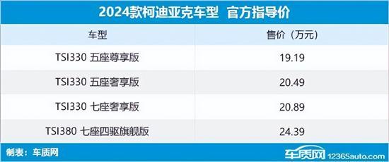 11月2日,2024款上汽大众斯柯达柯迪亚克、2024款上汽大众斯柯达柯迪亚克GT正式上市,其中柯迪亚克共推出4款车型,售价区间为19.19-24.39万元;柯迪亚克GT共2款车型,售价区间为20.89-24.39万元。