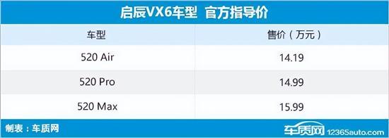 11月3日,启辰VX6正式上市。新车基于全新纯电平台打造,拥有2850mm的轴距,续航里程520公里。此次上市新车共推出3款车型,售价区间14.19-15.99万元。