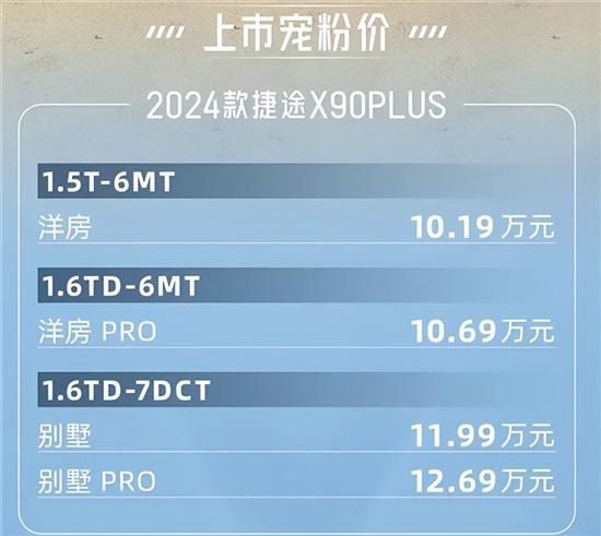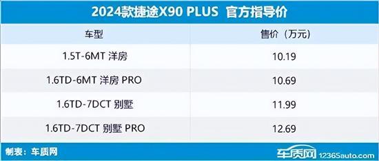 11月8日,编辑从捷途官方获悉,2024款捷途X90 PLUS正式上市。新车推出三种动力组合,分别为1.6TGDI-7DCT、1.6TGDI-6MT、1.5TCI-6MT,售价区间为10.19-12.69万元。值得一提的是,每款车型均提供5座和7座两种布局形式可选,同时官方还提供了5大购车权益。