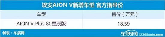 11月8日,编辑从埃安汽车官方获悉,旗下AION V Plus新增一款80星辰版车型,售价为18.59万元。