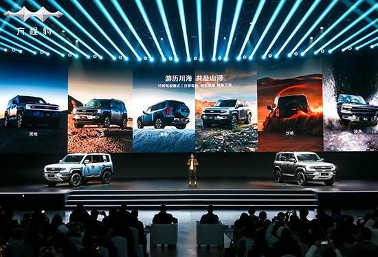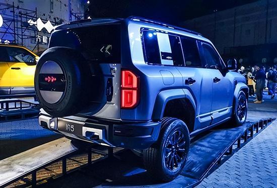动力方面,豹5搭载基于1.5T发动机和前/后双电机组成的四驱系统,总功率505kW,总扭矩760N·m,官方公布的0-100km/h加速时间仅需4.8s。底盘采用前/后双叉臂结构,接近角为35°,离去角为32°,纵向通过角达到20°。