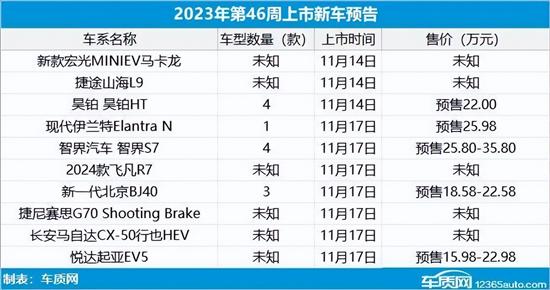 2023年第46周(11月13日-11月19日)上市新车预告