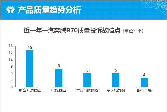 作为换代车型,2024款一汽奔腾B70是否会出现质量问题的隐患?对此,我们将从过去一年一汽奔腾B70的故障问题入手,通过对故障问题的分析,从而初步预测未来新车质量问题的发展趋势。