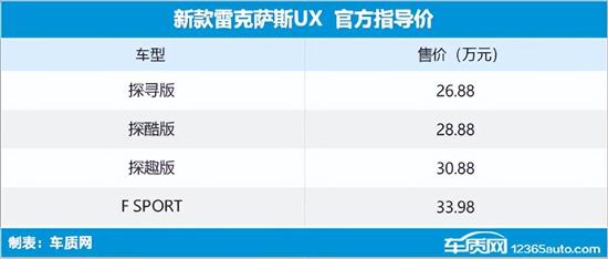 2月8日,新款雷克萨斯UX正式上市,新车推出4款车型,售价区间26.88-33.98万元。新车主要针对内饰进行革新,同时搭载第五代THS混动系统。