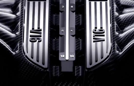 从曝光的预告短片中我们可以看到,这台全新发动机的气门室盖将采用碳纤维材质,同时上面还将镶嵌有BUGATTI英文标识、V16标识以及代表发动机点火顺序的数字。