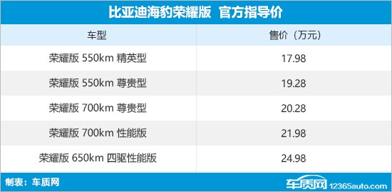 日前,比亚迪海豹荣耀版车型正式上市,新车推出5款车型,售价区间17.98-24.98万元。新车针对配置方面进行优化,同时在价格方面进一步下调。续航方面,新车提供550km、650公里以及700km,三种续航版本可选。此外,官方还提供了多重超值购车好礼。