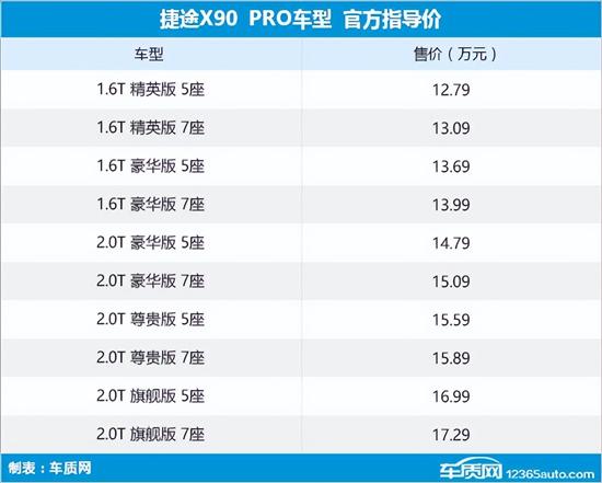 3月20日,捷途官方宣布,捷途X90 PRO正式上市。新车定位中型SUV,有5座和7座版本,动力提供1.6T和2.0T发动机。此次上市新车共推出10款车型,售价区间为12.79-17.29万元。