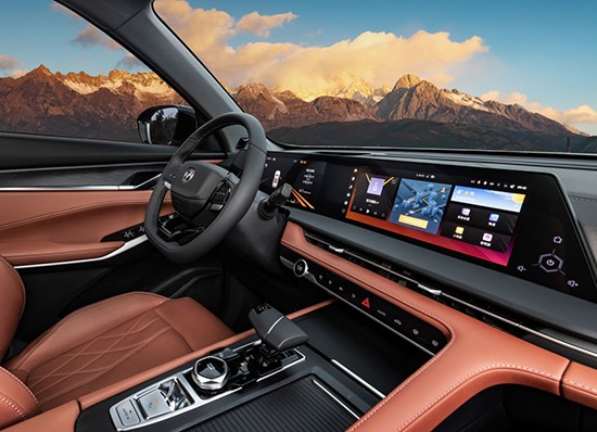 车内整体感受更偏向居家一些,大量软性皮质包覆+翻毛皮材质的顶棚,让车内充满了档次感。同时,新车还将采用6英寸主驾TFT屏幕+15.5英寸中控屏组合,符合了当下消费者对科技感的需求。其中,车机搭载高通骁龙8155芯片,操作流畅性有所保障。