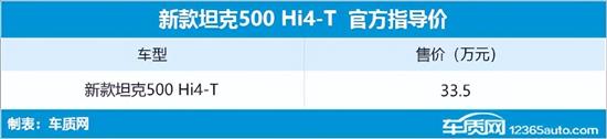 3月20日,新款坦克500 Hi4-T正式上市,售价33.5万元,与老款车型保持一致。现在购车,还可享6大无忧礼。作为升级版车型,新款坦克500 Hi4-T主要针对发动机、四驱系统和车机系统进行优化升级。