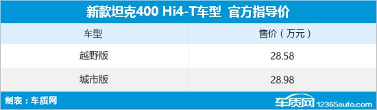 3月22日,新款坦克400 Hi4-T正式上市,新车共推出2款车型,售价区间为28.58-28.98万元。相比老款车型,新款坦克400 Hi4-T搭载了全新的米勒循环发动机,并更换为支持华为HiCar的最新车机系统。此外,官方还推出了包括质保无忧、保养无忧、网联无忧等在内的八大无忧礼。