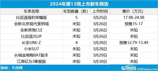2024年第13周(3月25日-3月31日)上市新车预告