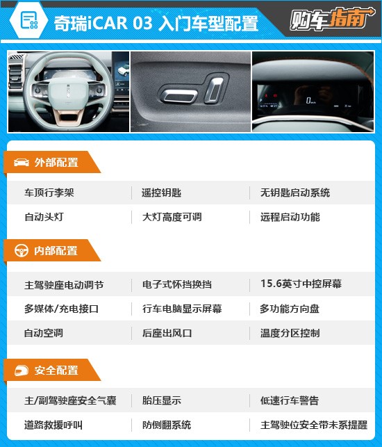 综上所述,对于想购买奇瑞iCAR 03的消费者,501km 两驱长续航版性价比相对较高,在购买时可优先考虑。