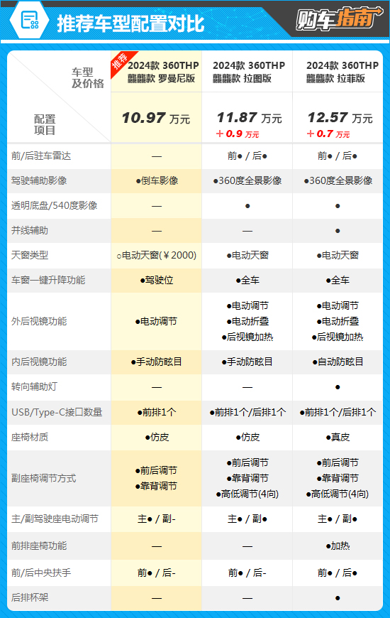 三、推荐车型配置差异分析