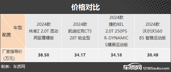 本次挑选的四款中型车均来自所谓的二线豪华品牌,而且都选取了2024款车型的顶配版本进行对比。厂商指导价仅供参考,毕竟如果算上终端优惠,实际成交价肯定还会有不小的惊喜。其中,林肯Z和凯迪拉克CT5是美式豪华的代表,而捷豹XEL的英伦绅士风也同样极具吸引力。至于沃尔沃S60,其独特的北欧极简设计绝对算是豪华品牌中的异类,能够让喜欢它的人欲罢不能。