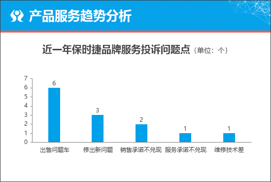 我们对保时捷品牌近一年来的服务问题投诉情况进行分析。通过筛选投诉数据可以发现,“出售问题车”投诉量较高,具体分析来看,该问题主要集中在保时捷卡宴和保时捷Macan车型上。