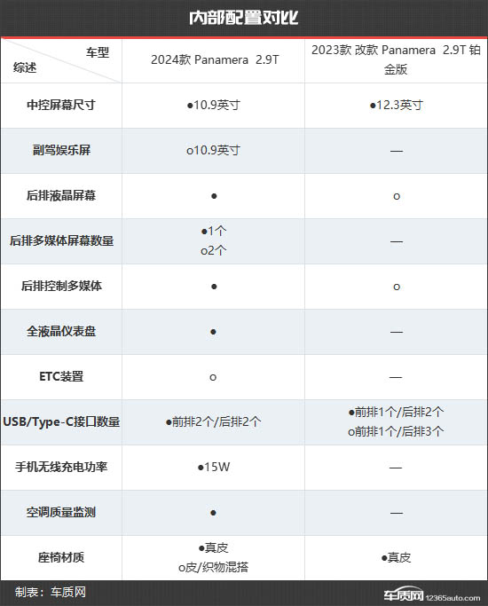 2024款保时捷Panamera共推出3款车型,售价区间为113.8-129.8万元。与老款车型相比,车型数量有所精简,更加便于消费者选择。为了方便查看,本文选择了2024款Panamera 2.9T和2023款 改款 Panamera 2.9T 铂金版车型进行了对比,售价分别为113.8万元和112.7万元。