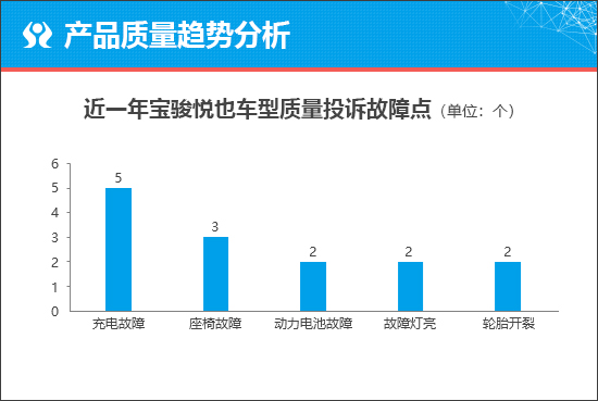 通过筛选宝骏悦也车型近一年的投诉数据可以发现,故障问题比较分散,其中包括“充电故障”、“座椅故障”、“动力电池故障”以及“故障灯亮”等,但投诉均为个位数。由于宝骏悦也Plus为全新车型,各方面都有所升级,因此可暂且认为其出现上述故障问题的概率较低。但实际情况如何,还要待其上市使用一段时间后才能有定论。
