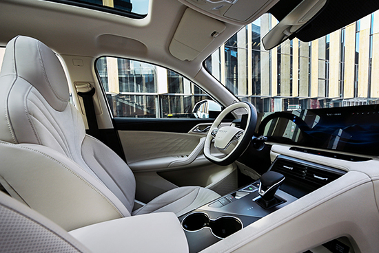 侧面的设计同样简约,线条流畅、动感,隐藏式门把手也紧跟当下的潮流。轮圈尺寸为19英寸,采用了十辐双色设计,视觉效果不错,此外,新车还提供选配20英寸轮圈,令侧面更具气场。车身尺寸方面,其长宽高分别为4700mm*1890mm*1664mm,轴距为2765mm。