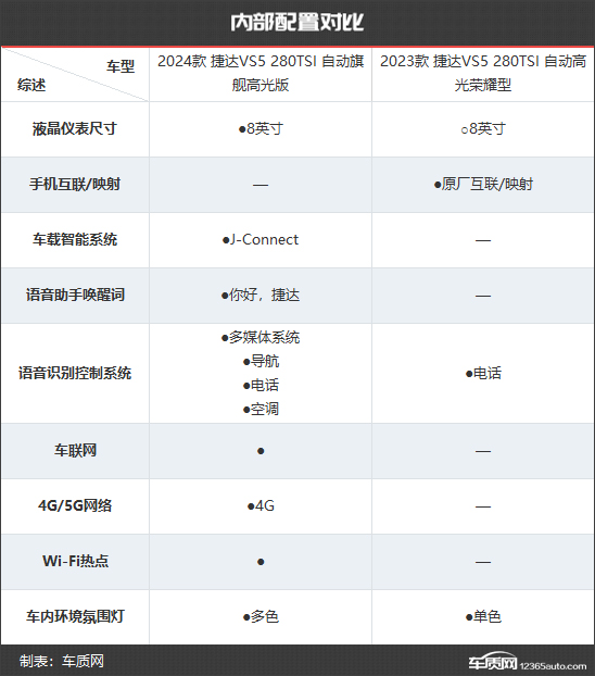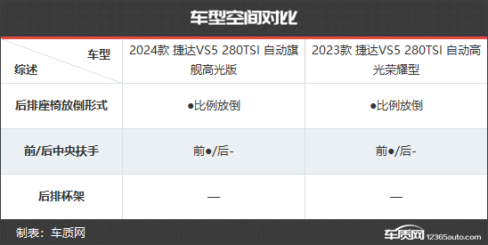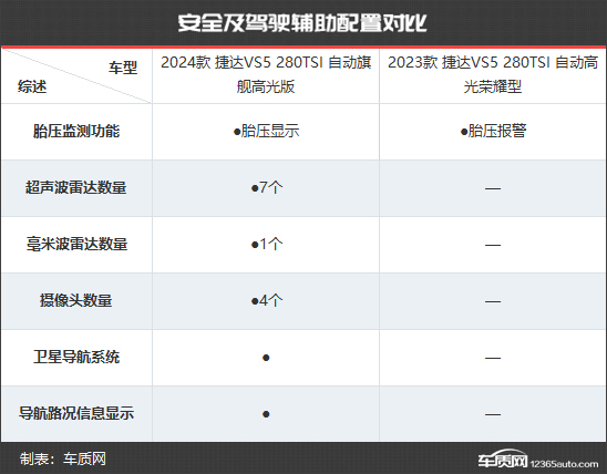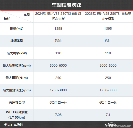2024款捷达VS5共推出了7款车型,对比2023款车型在数量上保持了一致,而起售价和顶配售价则分别上涨了1000元和4000元。为了进行直观对比,我们选择了两款顶配车型进行对比,以便能够更加直观地看出新老款车型在配置层面的具体差异。