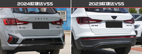 车尾方面,新款车型同样是在细节上进行调整,老款车型尾门上的LOGO在新款车型上被更换为“JETTA”字母标识,更加扁平化。此外,下包围也由贯穿式设计改为了矩形样式,与车头相互呼应,并且下包围还采用了亮黑色材质,令尾部看上去更加时尚、动感。